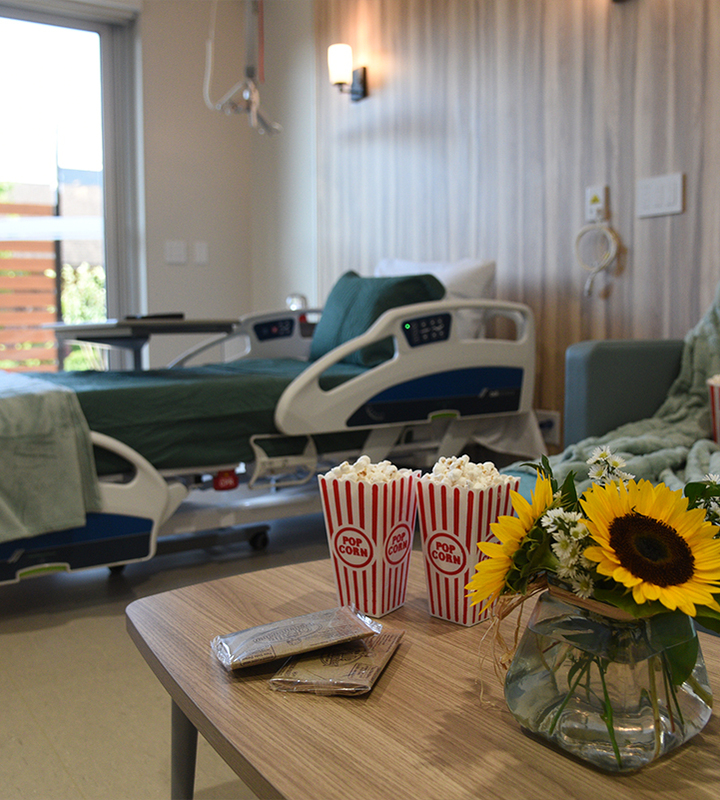 At hospice, we want everyone to feel at home. Our residence offers a warm and comfortable feel with private rooms, inviting spaces to gather with family and friends, and quiet places if you need to take a break and relax.