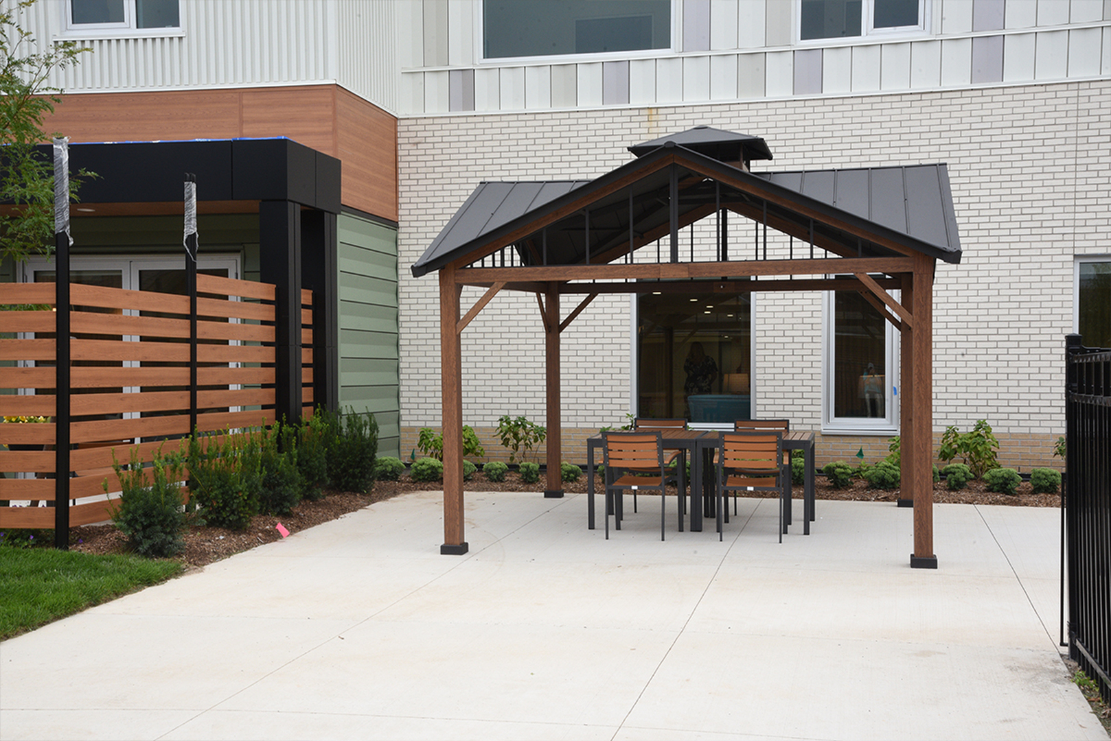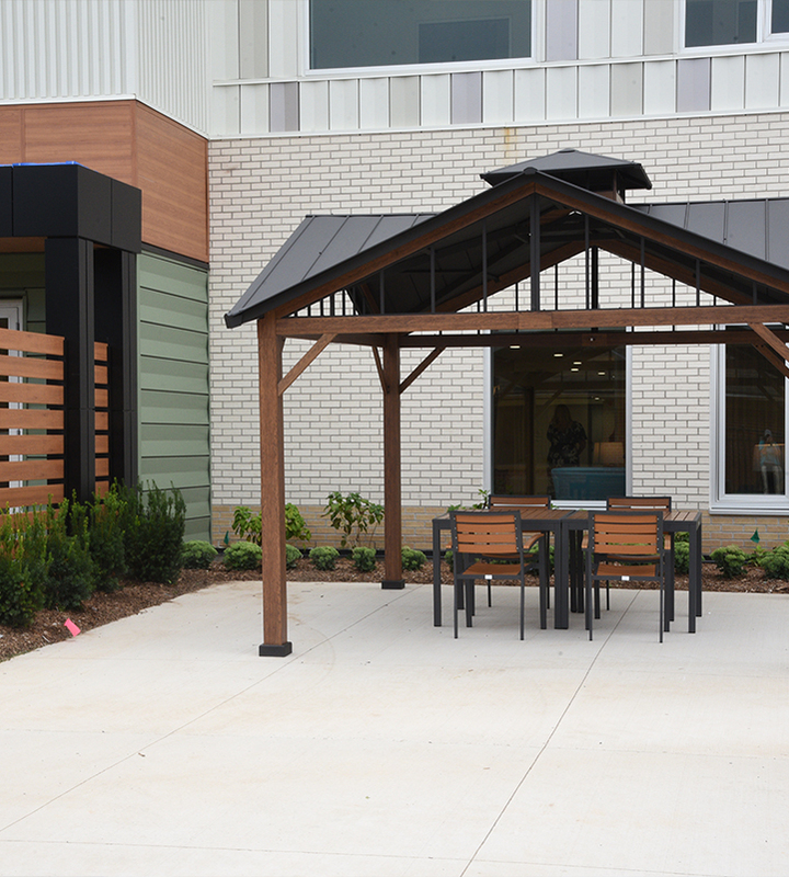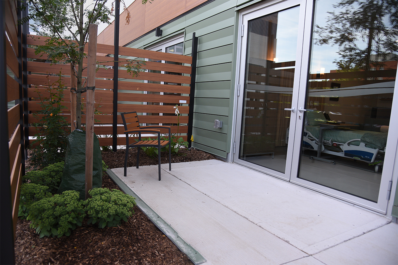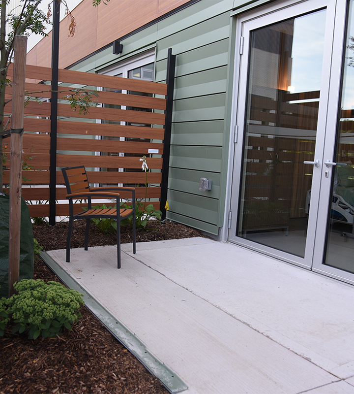 - Outdoors. A walkway and seating area gives you a chance to step outside, get some fresh air, and enjoy a quiet moment in nature—without ever being far from your loved one.